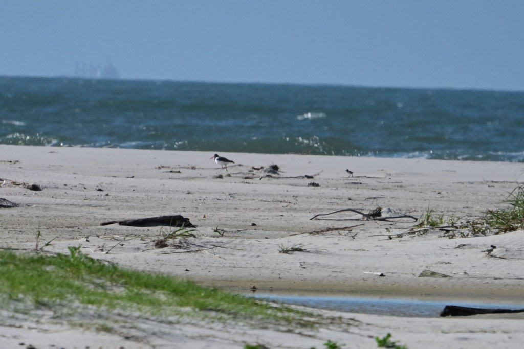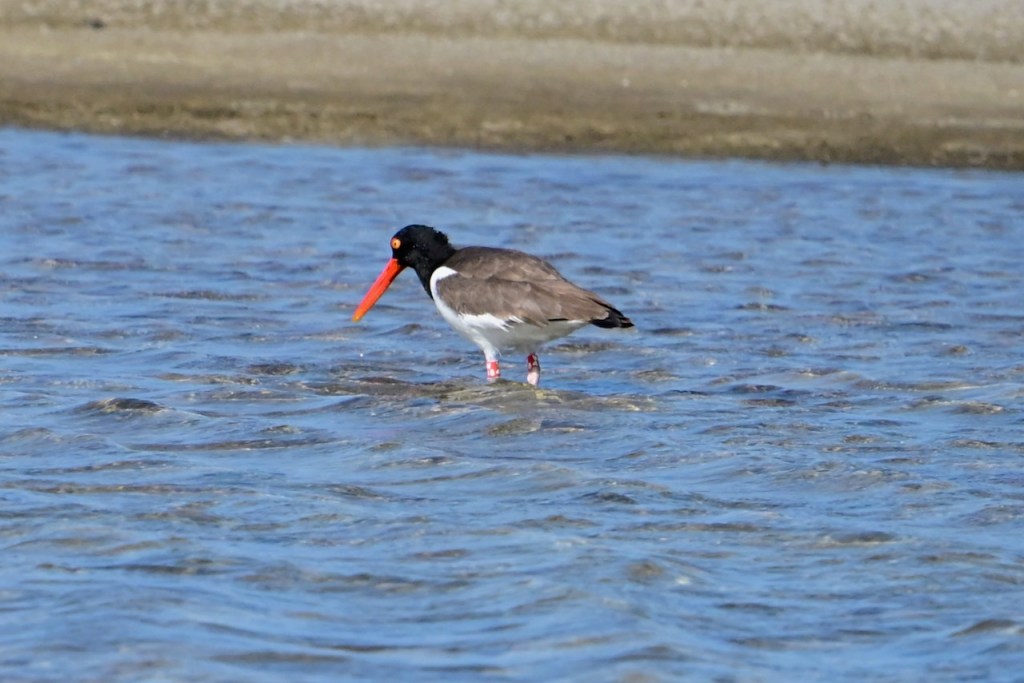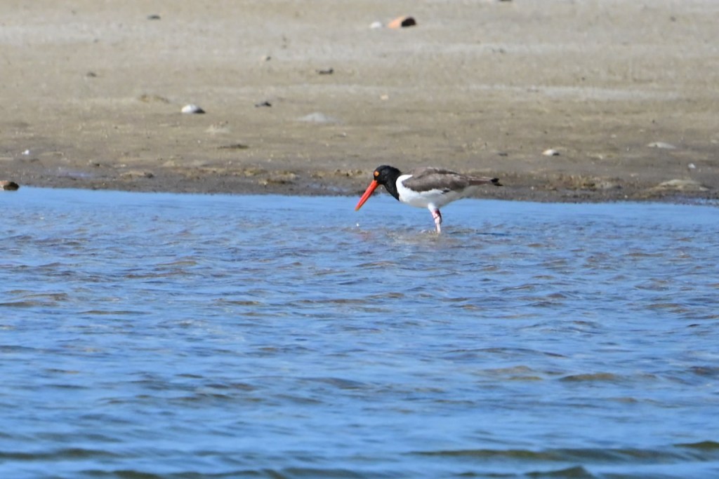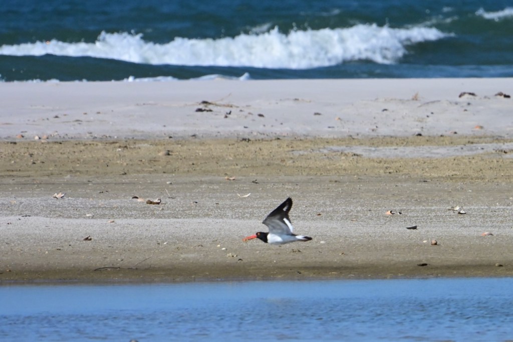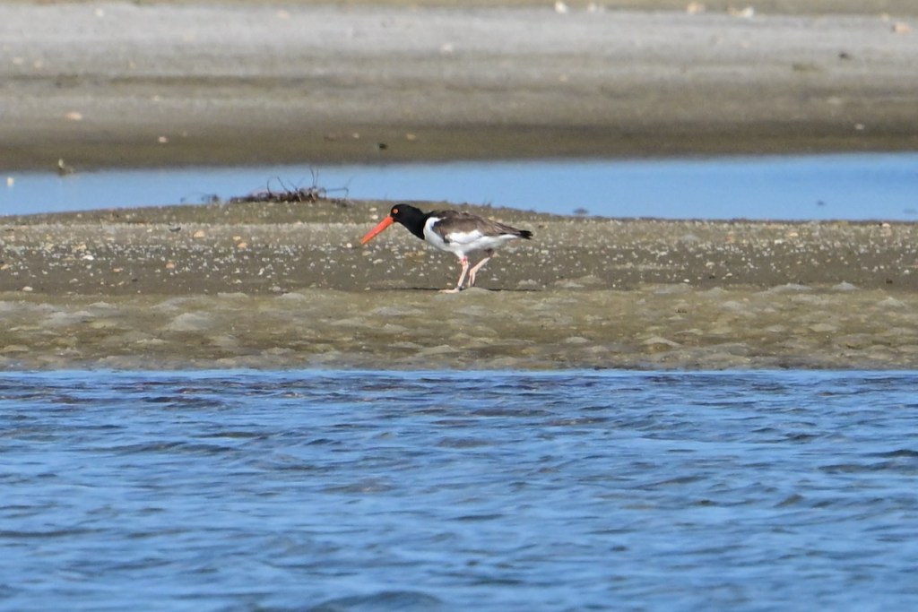 The American Oystercatcher was one of the birds I hoped we would spot on our trip to Tern Island during the Alabama Coastal Birdfest. I drove to Dauphin Island early Saturday morning and met the group at the boat launch. We saw the first Oystercatcher flying toward us and landing on the rock jetties. Our guide knew there was a nesting triplet on Tern Island. She said that two females and a male were tending a nest of chicks. We were not able to get close because she didn’t want to spook them. Luckily one flew a little closer to us.