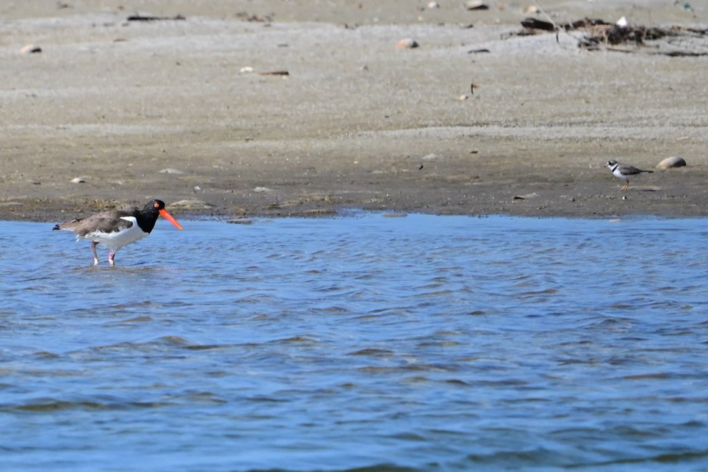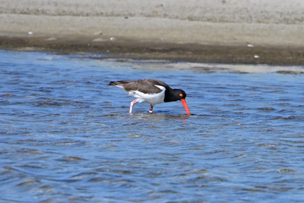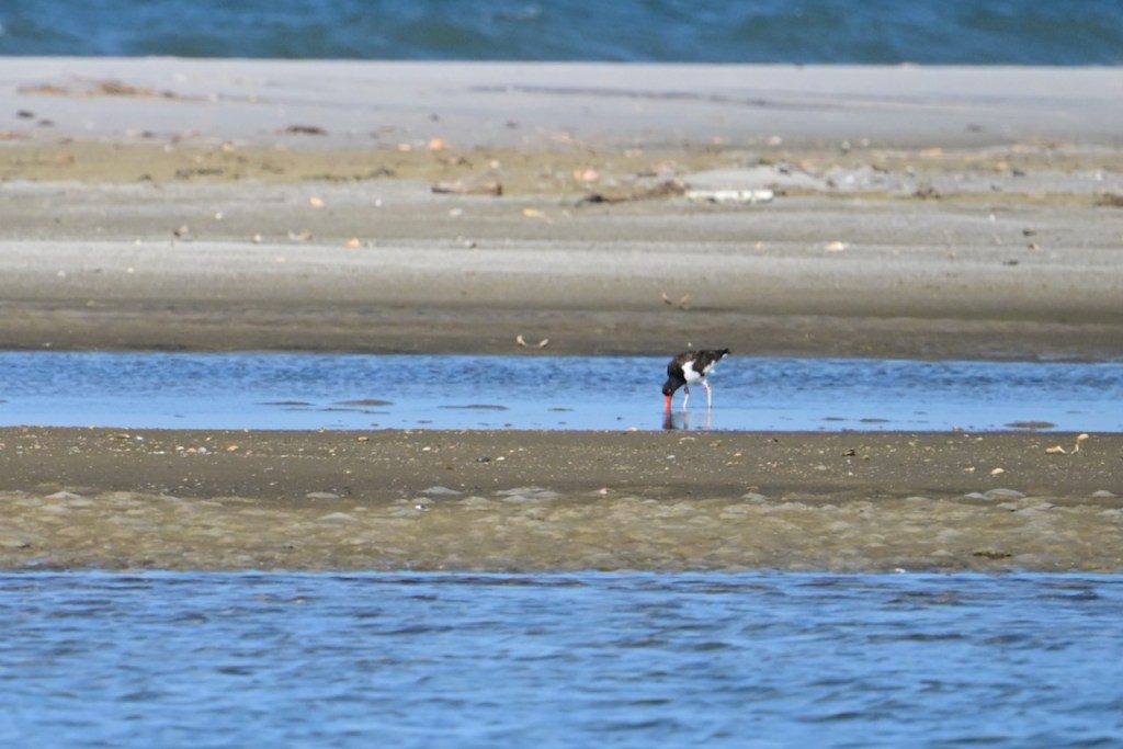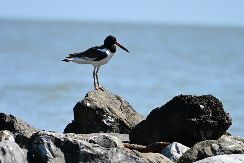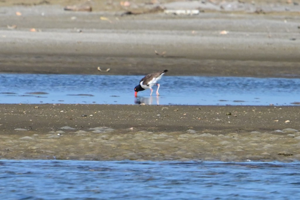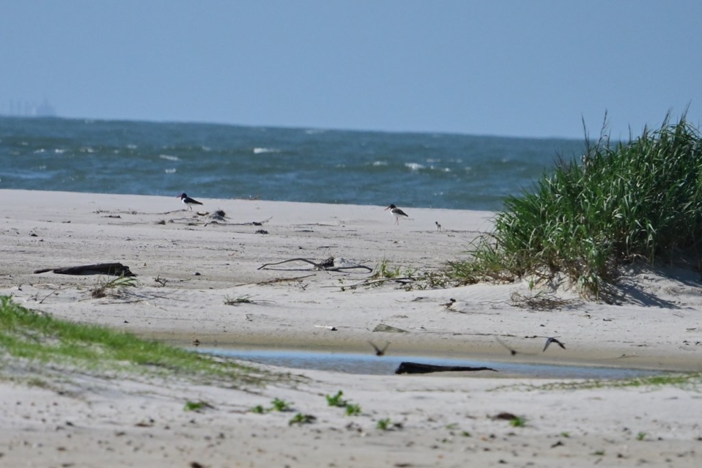 The American Oystercatcher was one of the birds I hoped we would spot on our trip to Tern Island during the Alabama Coastal Birdfest. I drove to Dauphin Island early Saturday morning and met the group at the boat launch. We saw the first Oystercatcher flying toward us and landing on the rock jetties. Our guide knew there was a nesting triplet on Tern Island. She said that two females and a male were tending a nest of chicks. We were not able to get close because she didn’t want to spook them. Luckily one flew a little closer to us.