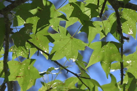 Leaves filtering sunlight are very photogenic, especially against a blue sky.