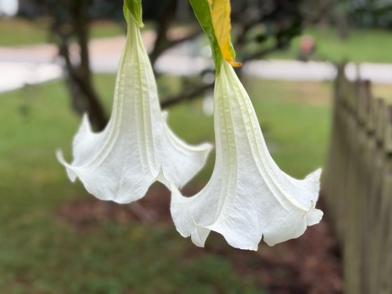 Angel’s Trumpet is a very interesting looking flowering plant, but it is toxic to touch.