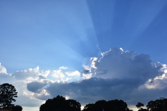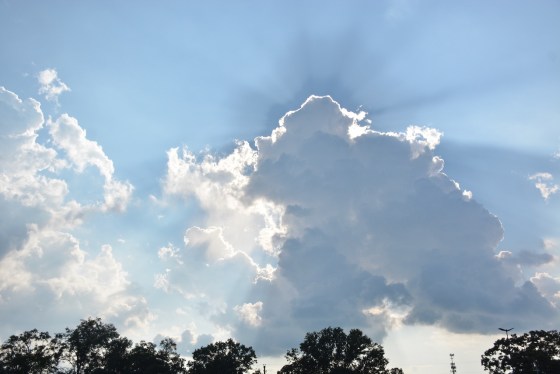 Behind the Clouds Sunbeams are Crepuscular Rays. They are created when sunlight shines through the gaps in clouds.