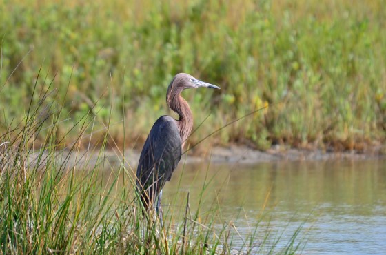 A fairly large, powerfully built but elegant heron. Reddish Egrets have long, sturdy legs, long necks, and thick, daggerlike bills. … More