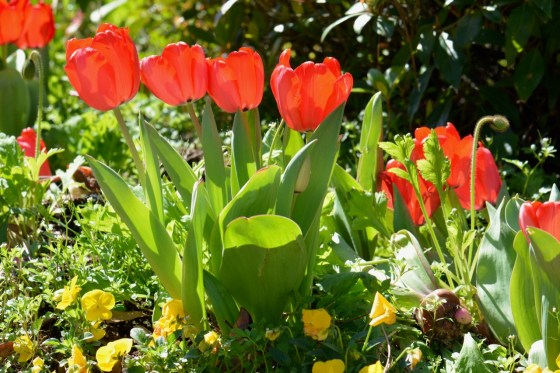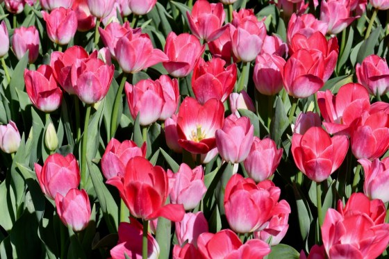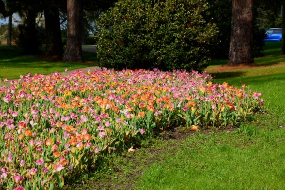 There is a large bed of tulips on the bluff above the Fairhope Municipal Pier.