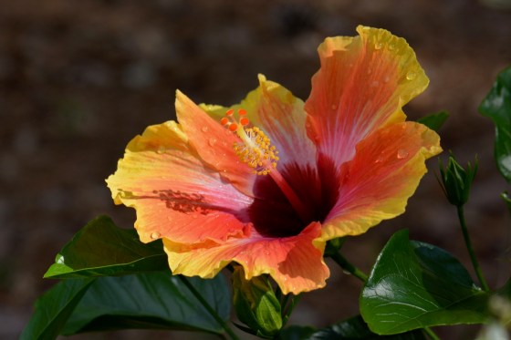 Hawaiian Sunset / Fiesta Hibiscus just keep blooming in my yard. Too pretty not to take another photo.
