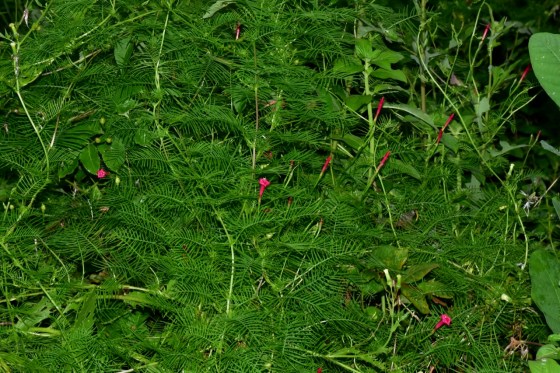 Cypress Vine has star-shaped flowers. I’m not sure if these flowers are growing from the vine or from another plant … More