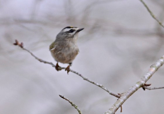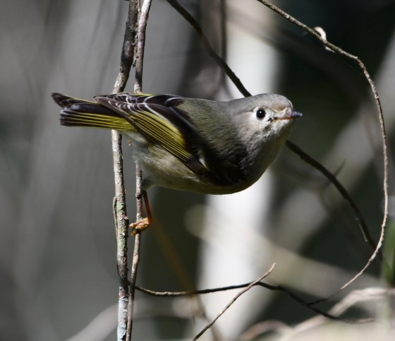 Smaller than a warbler or chickadee, this plain green-gray bird has a white eyering and a white bar on the … More
