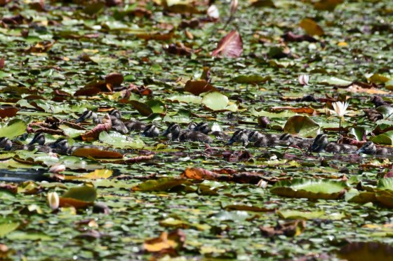 I stopped to take pictures of the water lilies, and saw the family of Black-bellied Whistling Ducks swimming through the … More