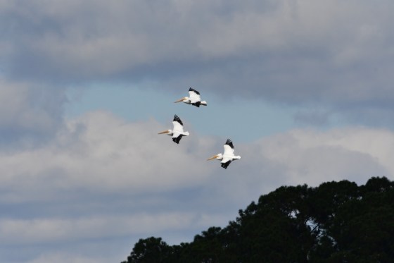 White Pelicans migrate to the Gulf Coast during the winter. A good place to spot them is Meaher State Park.