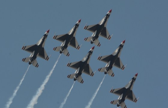 The U.S. Air Force Air Demonstration Squadron, the Thunderbirds, performs precision aerial maneuvers demonstrating the capabilities of Air Force high … More